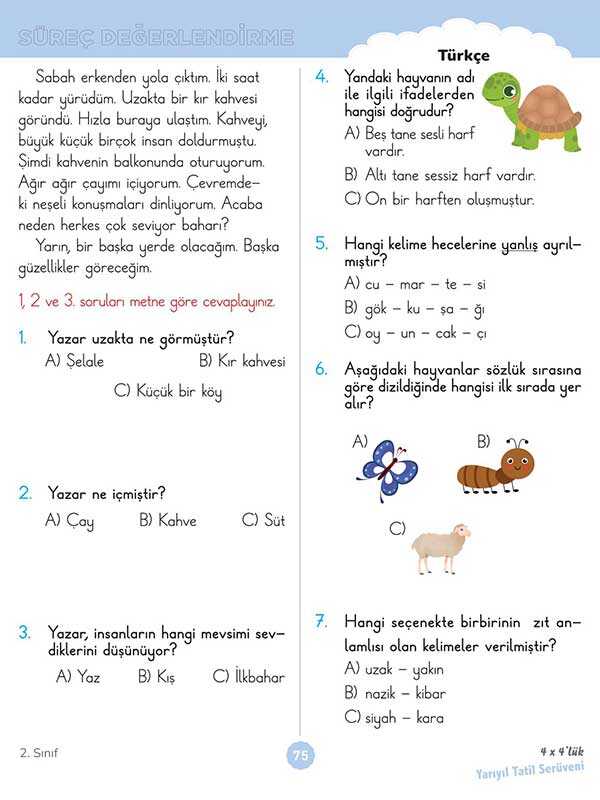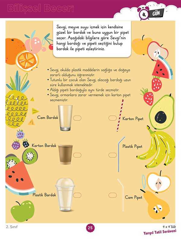 Her gün kısa, anlaşılır ve eğlenceli etkinliklerle tatil süreci verimli hale gelir. Kitabın sonunda yer alan Süreç Değerlendirme bölümüyle öğrenciler tatil boyunca kazandıkları bilgileri gözden geçirip kendilerini ölçme fırsatı bulur.